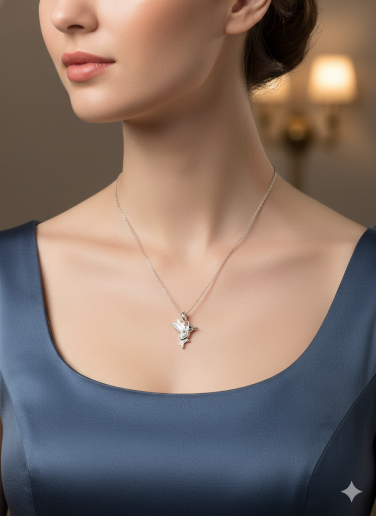 Collar colgante colibrí circón blanco